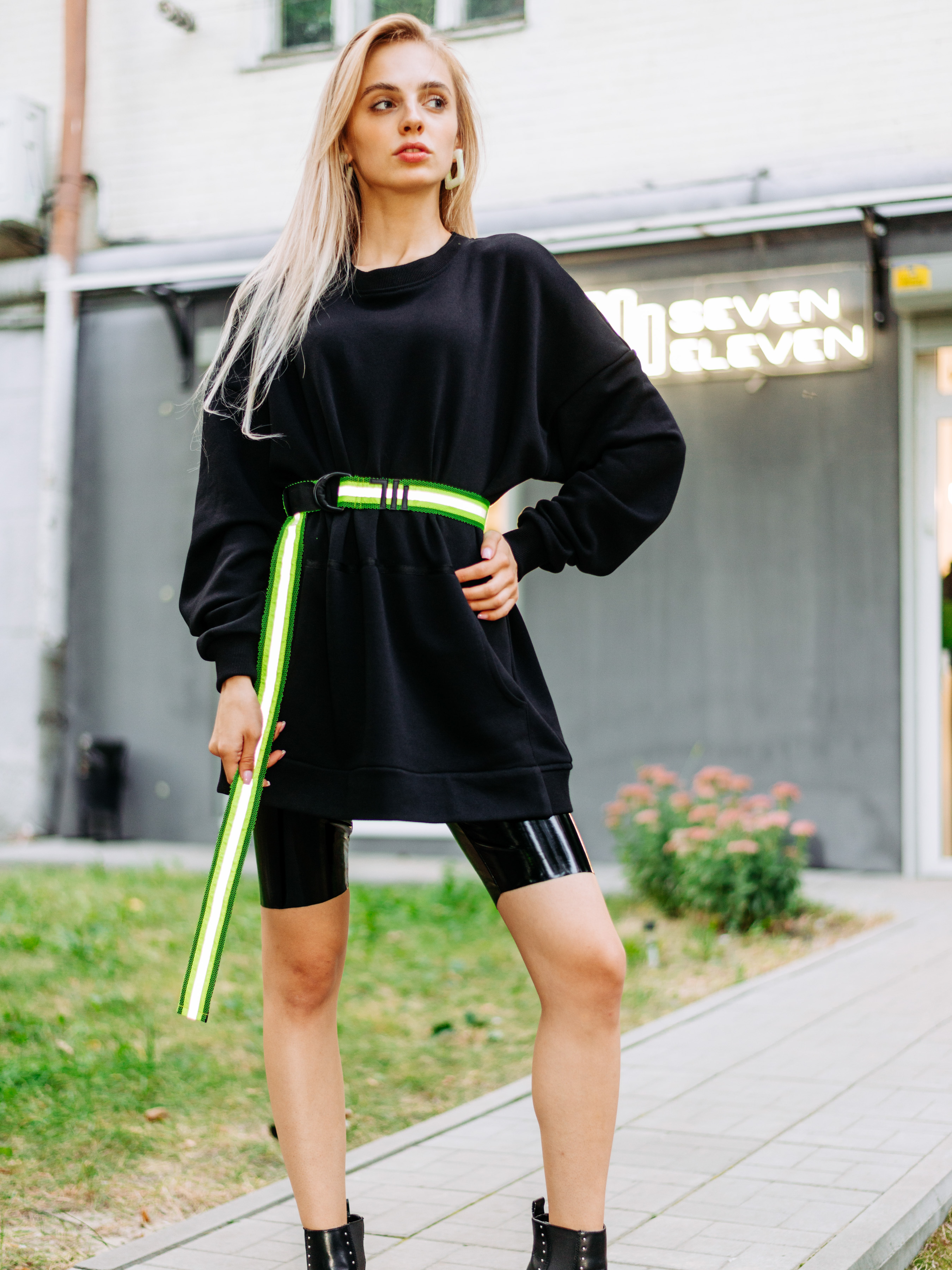 Зелений неоновий нейлоновий пасок зі світловідбивною тасьмою. Застібка на два півкільця.