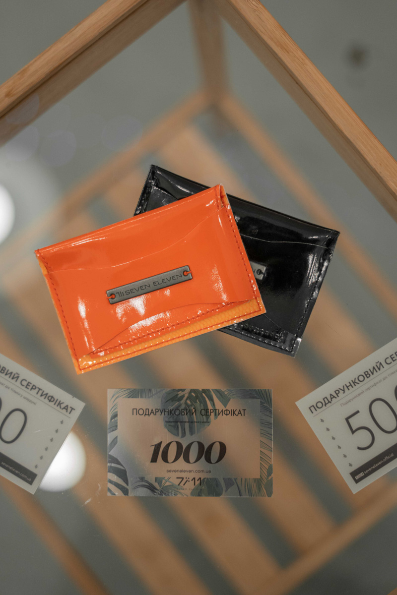 Сертифікат номіналом 1000 грн. Запакований у брендовий чохол з лаку (колір на вибір), який також можна використовувати як візитницю чи гаманець.